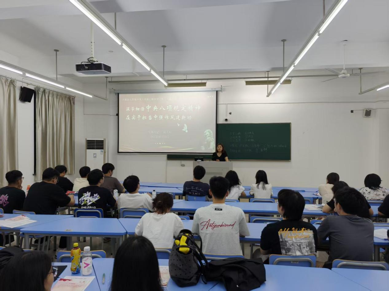 会上,陈飞彩以“深学细悟中央八项规定精神,在实干当中强作风新功”为主题为全体党员讲授党课。她表示,中央八项规定精神是管党治党、从严治党长期有效的铁规矩、硬杠杠,全体党员必须常学常新、深学细悟。她要求,一是要在学风建设上做表率;二是要在厉行节约上重自律;三是要在服务同学上见真情;四是要在遵守纪律上严要求;五是要在抵制歪风上敢亮剑。她强调,学习的目的在于以“学”铸魂,全面剖析;以“查”正风,全力纠偏;以“改”促进,知行合一。要以更严要求、更实作风、更优学业,擦亮党员身份,让青春在服务奉献中闪光,让中央八项规定精神在校园沃土中生根发芽。