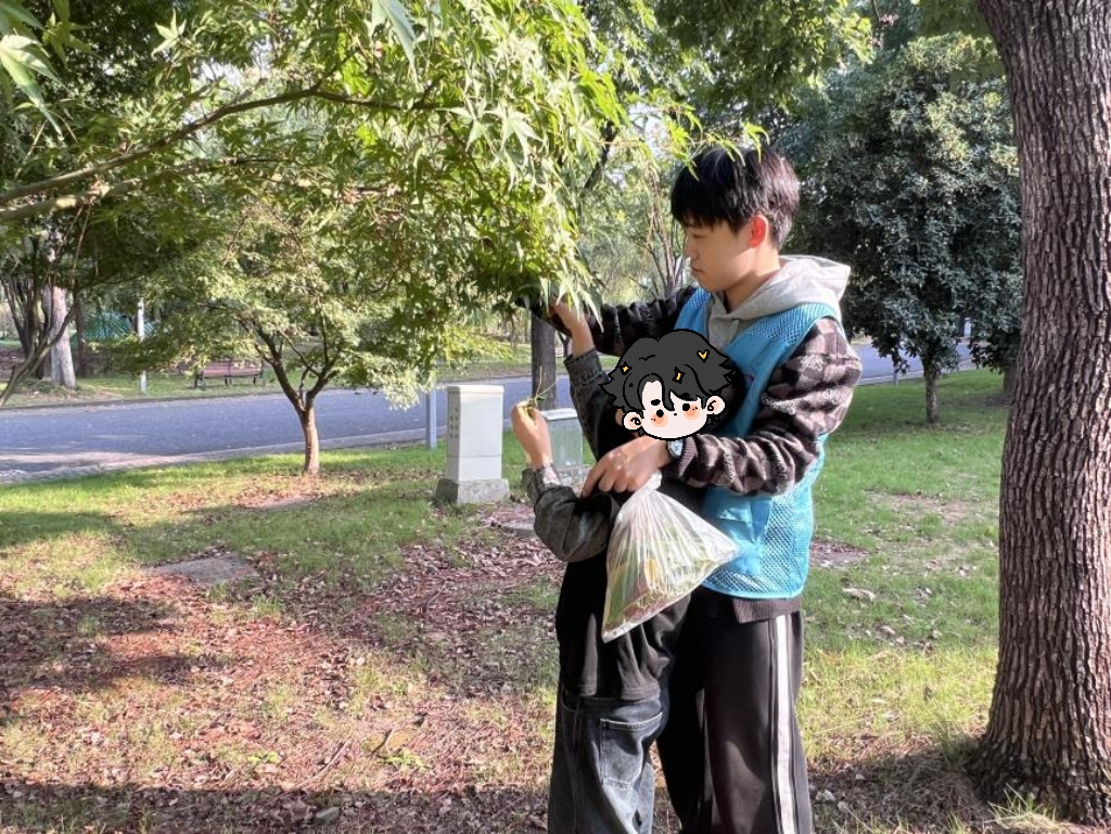 随后,党员志愿者们一对一陪伴孩子走进户外自然园区,共同寻找落叶、花瓣、细枝等天然材料。孩子们通过细心观察、自由收集将课堂认知延伸至自然探索之中。