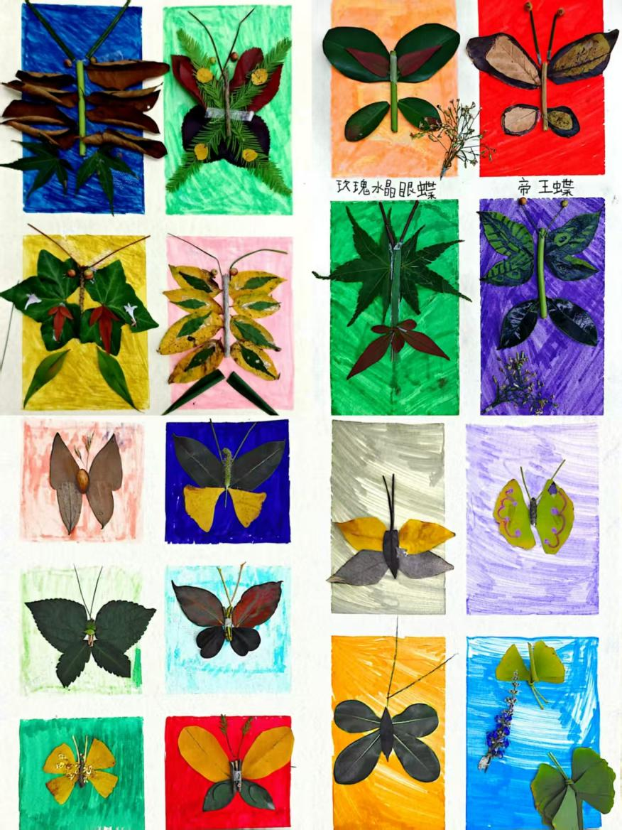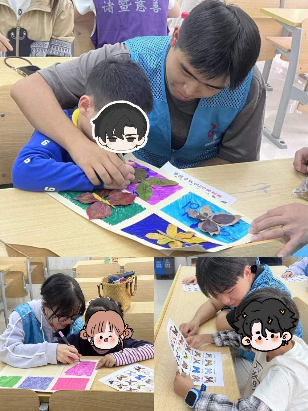 在党员志愿者的协助下,孩子们通过自己对蝴蝶的认识和丰富的想象,将采集的素材进行创意拼贴,亲手制作成独一无二的“自然蝴蝶”。孩子们纷纷骄傲地展示独属于自己的“自然蝴蝶”,表情荡漾着喜悦与自豪。