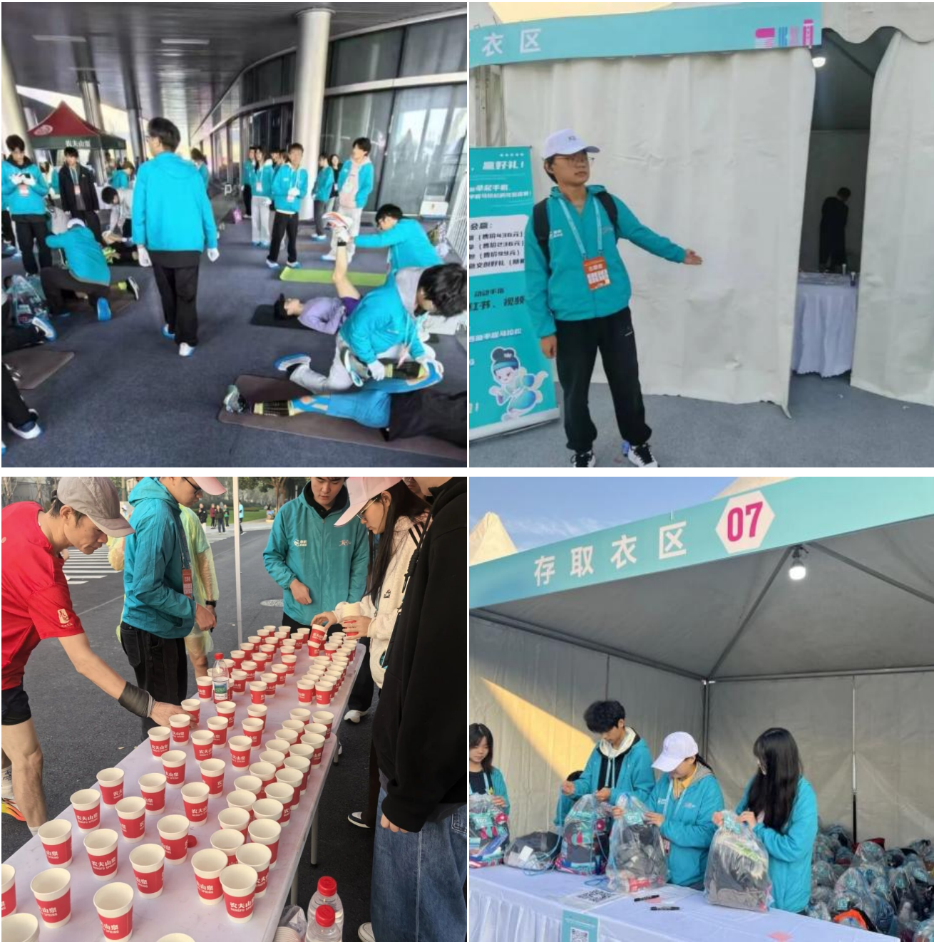 11月16日清晨,志愿者在存包区、饮水站、赛道沿线、计时点及拉伸区等岗位开展工作。他们整理物资、提供饮水补给、举牌助威、维护秩序,并为选手提供停车及接驳指引。尽管天气寒冷、站立时间较长,志愿者们始终以饱满的热情和专业的服务,保障了赛事各环节的顺利进行。