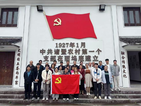 活动期间,工程技术学院阳光志愿者服务支队怀着崇敬之心走进中共诸暨农村第一支部旧址。在讲解员的详细介绍下,大家深入了解了 1927 年诸暨地区首个农村党支部的诞生历程及革命先烈的英雄事迹。离退休老党员结合自身经历,现场分享党的先进事迹,言语间饱含对党的忠诚与热爱。青年教师党员深受触动,纷纷表示将把红色基因融入育人实践,着力培养更多勇于担当的新时代优秀人才。随后,全体党员教师共同重温入党誓词,进一步坚定理想信念,并实地参观研讨了当地特色非遗文化,感受传统文化的独特魅力。