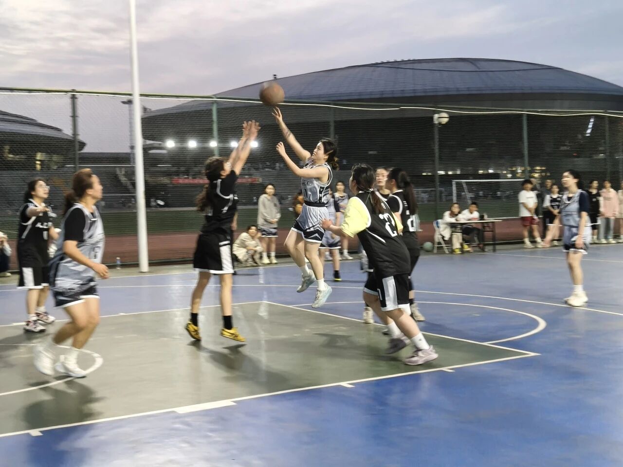 为丰富校园文体生活,增进学院间交流协作,展现学子拼搏进取的青春风采,4 月 25 日夕阳西下,工程技术学院与人文学院女篮队员在校园篮球场展开巅峰对决,一场热血沸腾的篮球友谊赛正式上演。现场加油声、呐喊声交织回荡,气氛热烈非凡。