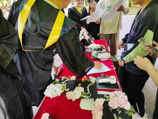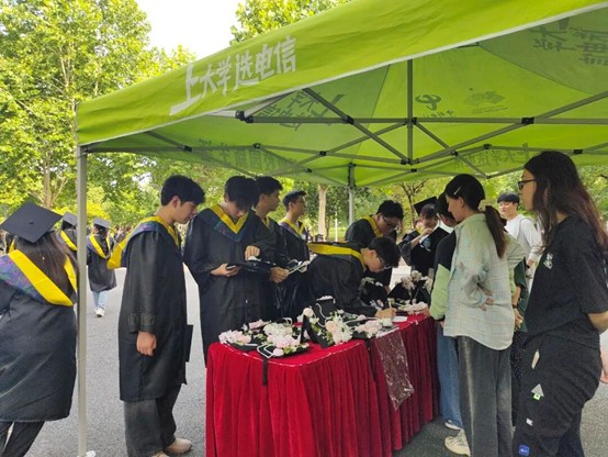 为给2025 届毕业生送上温暖祝福,定格青春美好瞬间,让毕业季更具仪式感与纪念意义,六月中旬,工程技术学院阳光志愿者服务支队开展的“青春不散场,未来皆可期”2025毕业季系列活动在欢笑与感动中圆满落幕。本次活动共设置跳蚤市场、学士帽簪花、光影视频寄祝福、毕业闯关集记忆四大主题板块,为毕业生打造了一场充满仪式感、文化感和归属感的告别之旅。