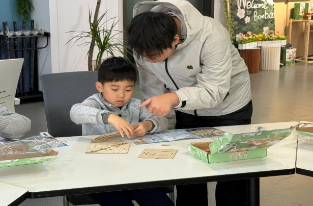 手工环节,学生党员们耐心指导小朋友拼装风力发电机模型,当叶片转动、小灯泡亮起,孩子们直观感受到了能量转换的神奇,也了解到了绿色新能源对国家发展的意义。