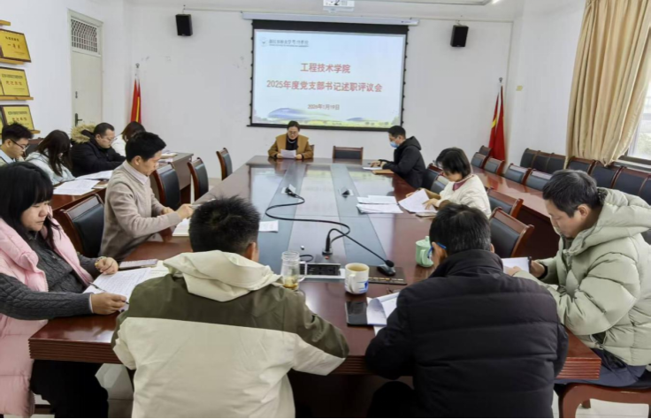 为进一步强化党支部书记责任担当,压实党建工作责任,1月19日,工程技术学院召开2025年度党支部书记述职评议会。工程技术学院党总支委员及全体党支部书记参加会议。